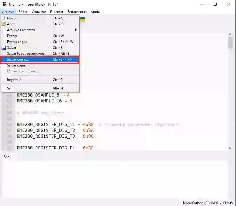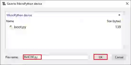 - Nomeie seu arquivo como BME280.py e pressione o botão