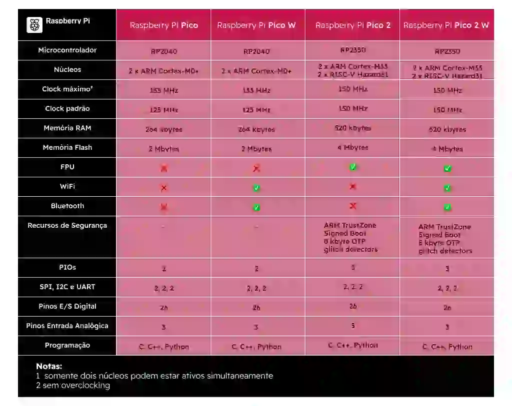 Portanto, ao considerar qual Raspberry Pi Pico comprar, avalie as características e os recursos necessários para seu projeto.
