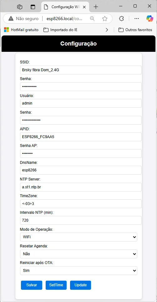 - Sincronização de horário via navegador no modo AP, quando não há acesso a servidores NTP.