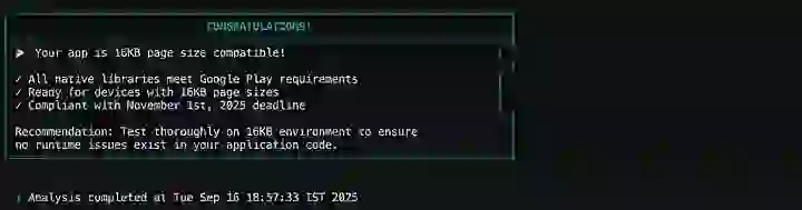 Aqui está o que eu fiz para migrar um dos meus aplicativos. Não espere pelo prazo final — alguns pacotes podem ainda não suportar totalmente o tamanho de página de 16KB. No meu caso, agir cedo poupou uma tonelada de dores de cabeça!