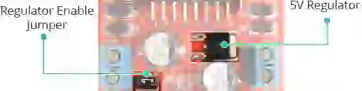 Em seguida, precisamos fornecer 5 V para o circuito lógico do L298 N. Usaremos o regulador de 5 V integrado para extrair 5 V da fonte de alimentação do motor, portanto, mantenha o jumper de 5 V-EN no lugar.