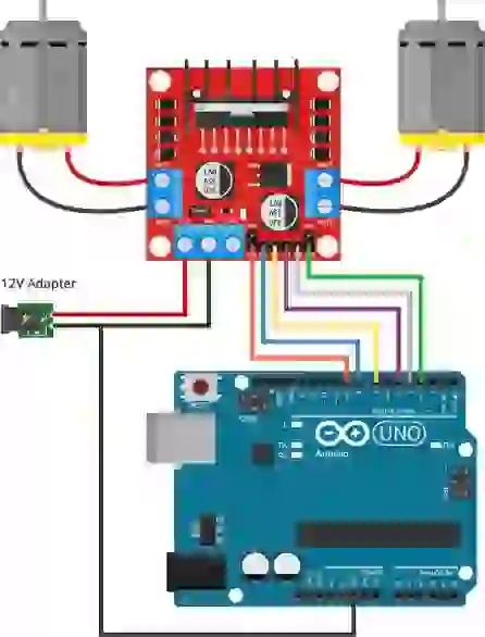 Levando em consideração uma queda de tensão de 2 V, se você estiver usando motores de 5V, precisará fornecer 7V no terminal de alimentação do motor. Se você tem motores de 12 V, em seguida, sua tensão de alimentação do motor deve ser de 14V.