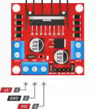 VSS é usado para alimentar o circuito lógico dentro do IC L298 N, e pode variar entre 5 V e 7 V.