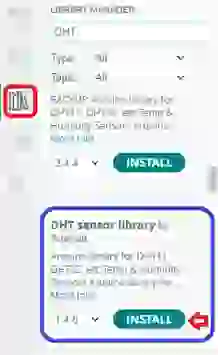 Abra o Arduino IDE e vá para o Icon Library Manager. O Gerenciador de bibliotecas deve ser aberto, e efetue a busca por DHT e Unified.